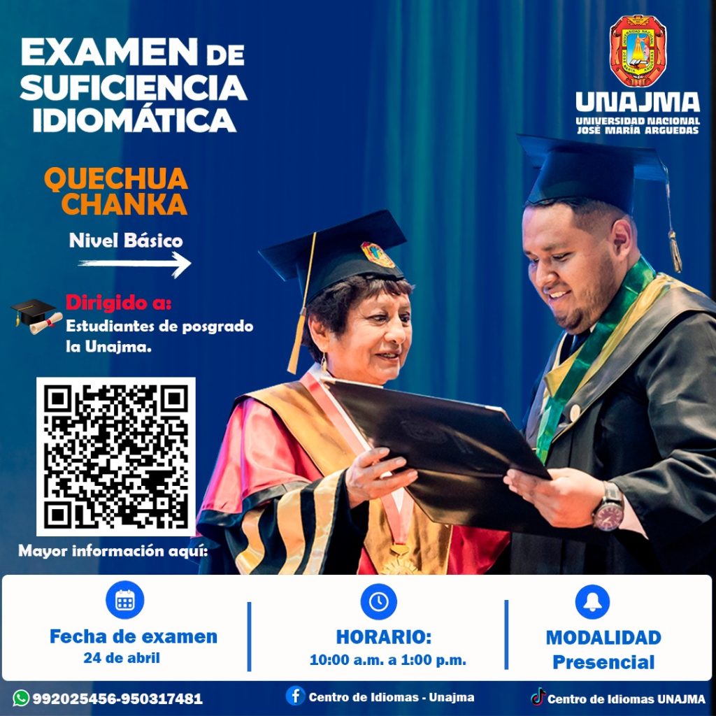 📚 EXAMEN DE SUFICIENCIA IDIOMA QUECHUA CHANKA 🎓 Dirigido a: Estudiantes de posgrado de la UNAJMA El Centro de Idiomas de la Universidad Nacional José María Arguedas (UNAJMA) convoca a...